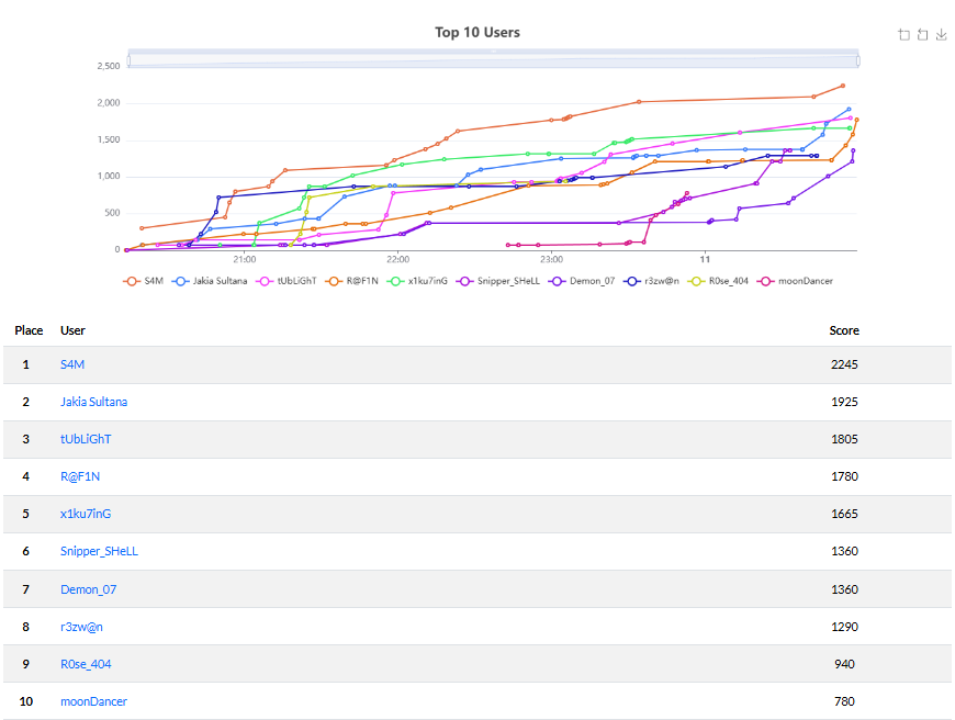- 1st Place: Seam Sikder Nahid - 2245 points